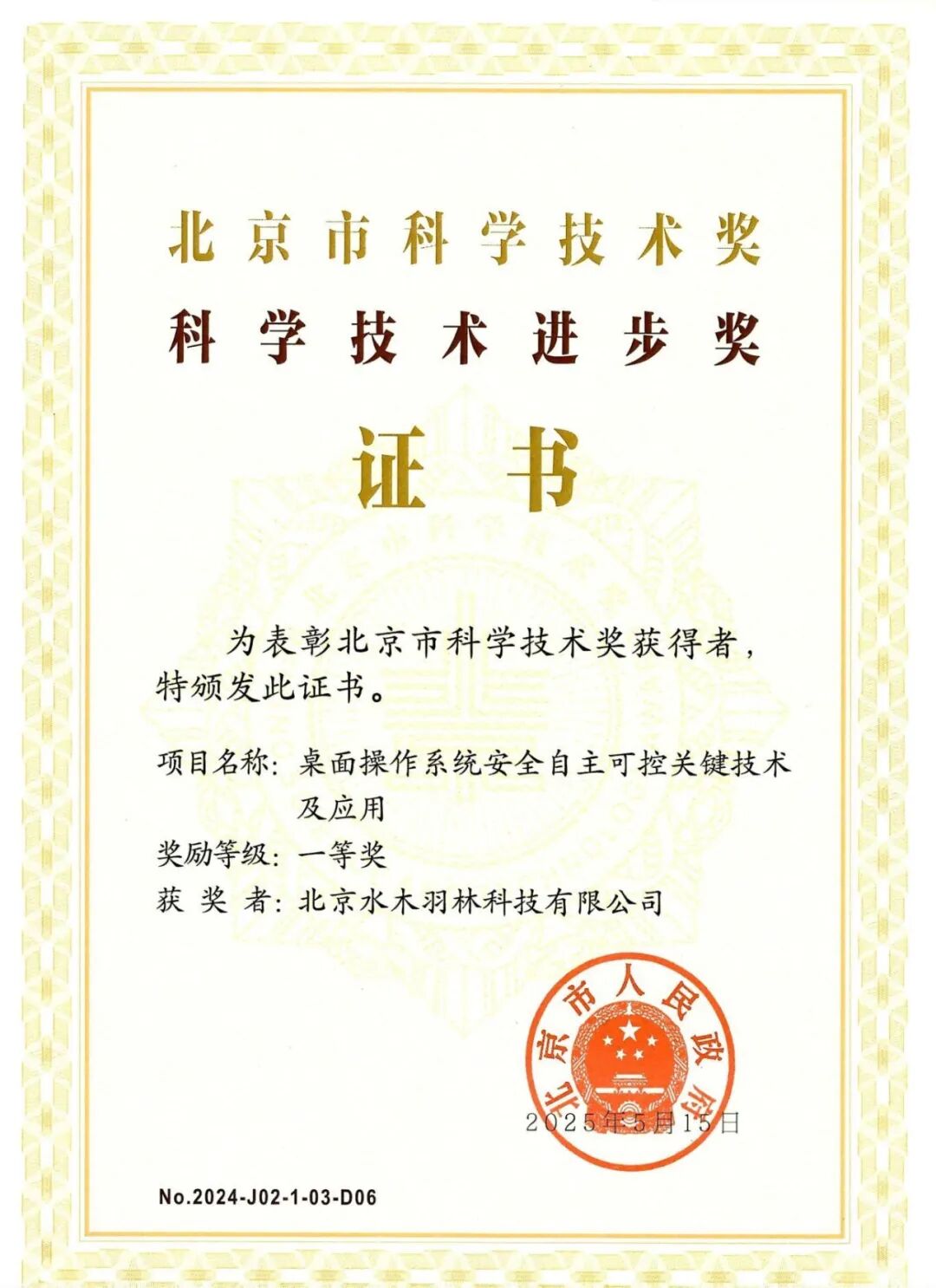 2025年,水木羽林凭借操作系统安全测试与保障技术应用成果,荣获北京市科技进步奖一等奖。国之重器,护航有我!